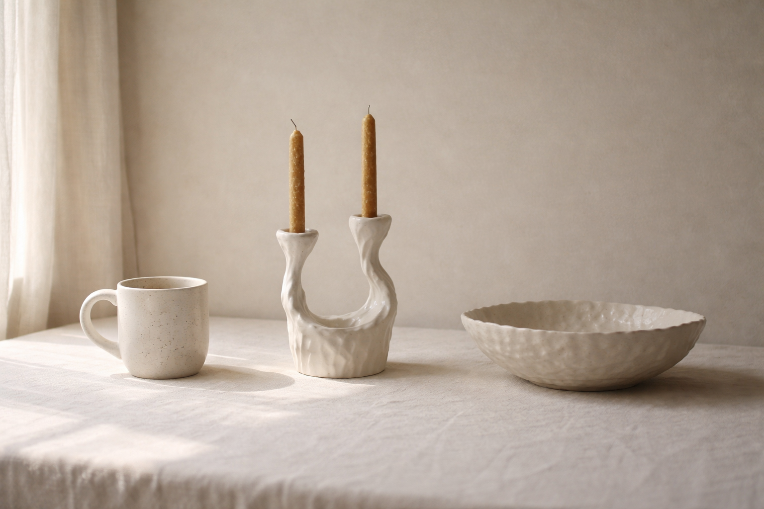Soft Rituals is about slowing down. About the way light moves in the evening, the feeling of fabric against skin, the small pauses that shape our days. These objects create atmosphere — not through excess, but through subtle presence.